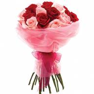 Очень изысканная и романтичная композиция. Розовые и красные розы напоминают пламя или яркий летний закат. Сочетание символичных значений розовых и красных роз усиливается, говоря о неимоверной глубине чувств, страсти и преданности. Не менее выгодно выглядит цветовая гамма – яркий красный и нежный розовый удачно гармонируют и дополняют друг друга.
